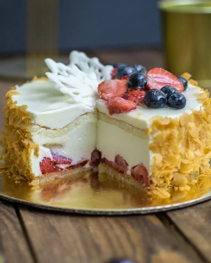 - Naudokite šviežius ingredientus, ypač uogas, kad tortas būtų gaivus ir aromatingas.